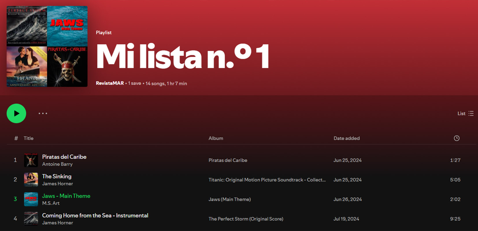 Lista de 14 bandas sonoras del mar en Spotify
