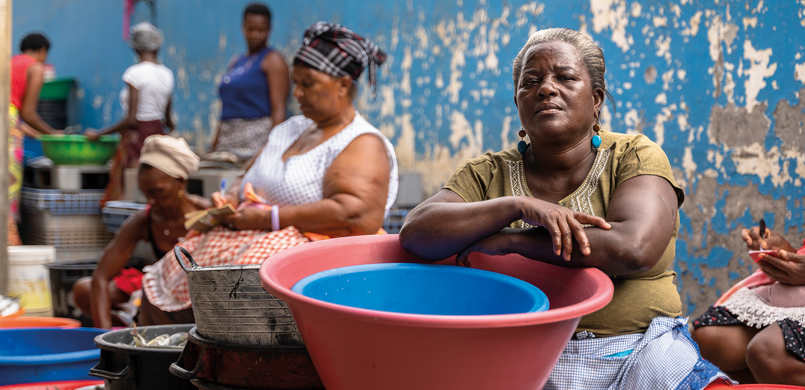 Otro de los proyectos destacables de Basha es ‘Nos Mar, Nos Komunidadi’ en el que da a conocer la vida ligada en el mar en Cabo Verde a través de la pesca artesanal. Esta obra surgió durante su estancia de seis meses en el país, donde surgió una colaboración con el proyecto de cooperación ‘Familia di Mar’ financiado por la Agencia Española de Cooperación Internacional para el Desarrollo (AECID) e implementado por la ONG Coopera y el Movimiento África 70 para dar a conocer a la comunidad local Praia en la isla de Santiago. Su trabajo consistió en documentar la profesión de los pescadores y pescadoras del país. Peixeiras o vendedoras ambulantes de pescado, en el puerto de Praia. Cabo Verde.
