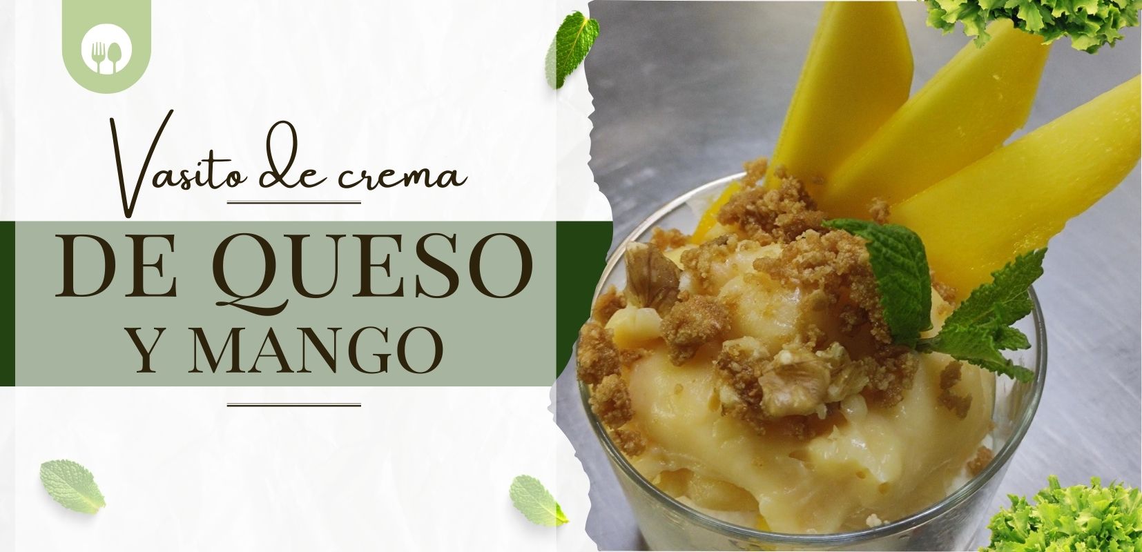 Preparación: Para la natilla Paso 1 Infusionar la leche con el limón y la canela. Aparte mezclar en frío azúcar, maicena y huevo. Desleír esta mezcla con la leche, colar y poner a calentar hasta conseguir la consistencia de la natilla. Reservar y enfriar. Paso 2 Una vez frío, mezclar con la pulpa triturada de un mango maduro. Para la crema de queso Batir el queso con el azúcar glass. Semimontar la nata y añadir a la mezcla anterior con movimientos envolventes. Reservar. En caso de usar requesón, escurrir bien antes. Para la base Triturar las galletas, picar frutos secos, fundir la mantequilla y mezclar hasta obtener una pasta arenosa. Presentación Poner en fondo del vasito la mezcla de la base. Disponer encima con manga la crema de queso. Colocar unos dados de mango y a continuación cubrir con la natilla de mango. Decorar con la mezcla de la base, unas tiras de mango y una ramita de menta. VALORACIÓN NUTRICIONAL Recomendamos utilizar requesón ya que su contenido graso es menor que la mayoría de los quesos y sobre todo del queso crema que contiene además nata. En personas con enfermedades cardiovasculares o diabetes aconsejamos adaptar el postre quitando la nata y la mantequilla y reduciendo el azúcar añadido. IMPORTANTE FUENTE PROTEICA. El requesón contiene cuatro veces más proteínas que la leche; además, sus proteínas son de alto valor biológico, es muy rico en seroproteínas que contienen todos los aminoácidos esenciales. Este derivado lácteo es una opción como hemos visto muy saludable, pero tomado en exceso podría desencadenar algunos problemas de salud, como aumentar la presión arterial o problemas renales.