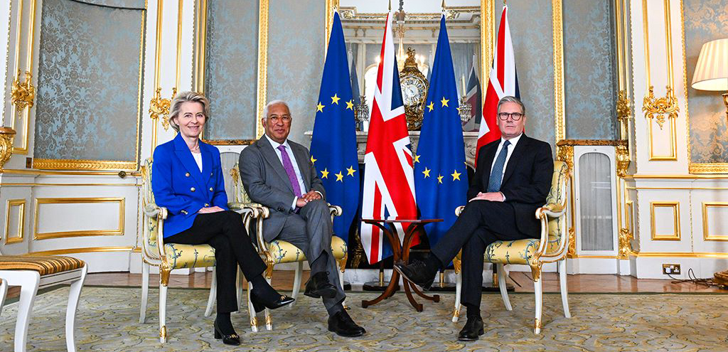 Ursula von der Leyen y Antonio Costa (UE) con el primer ministro británico.