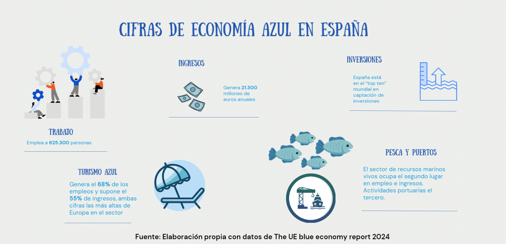 España es uno de los cuatro países que más aporta a la Unión Europea en materia de economía azul, es líder en turismo pesquero y tercero en actividad portuaria. Otro de nuestros fuertes es la gastronomía vinculada al mar.