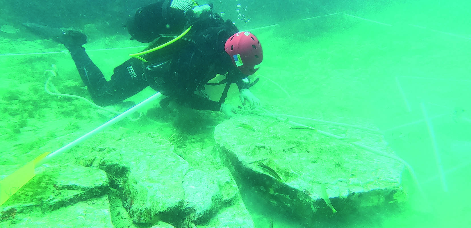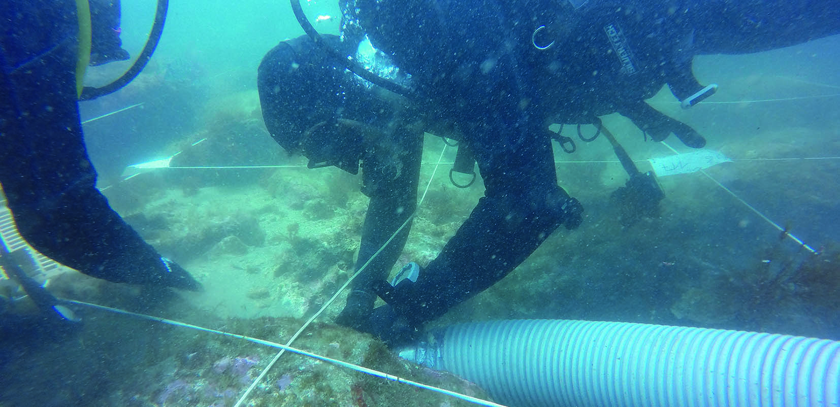 Realizando mediciones de un yacimiento arqueológico submarino.