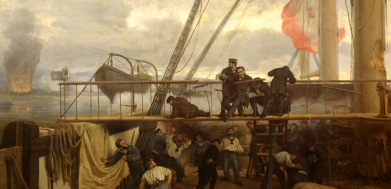 Méndez Núñez dirigió la operación desde el desprotegido puente de navegación de la Numancia, resultando herido hasta en ocho ocasiones por trozos de metralla.