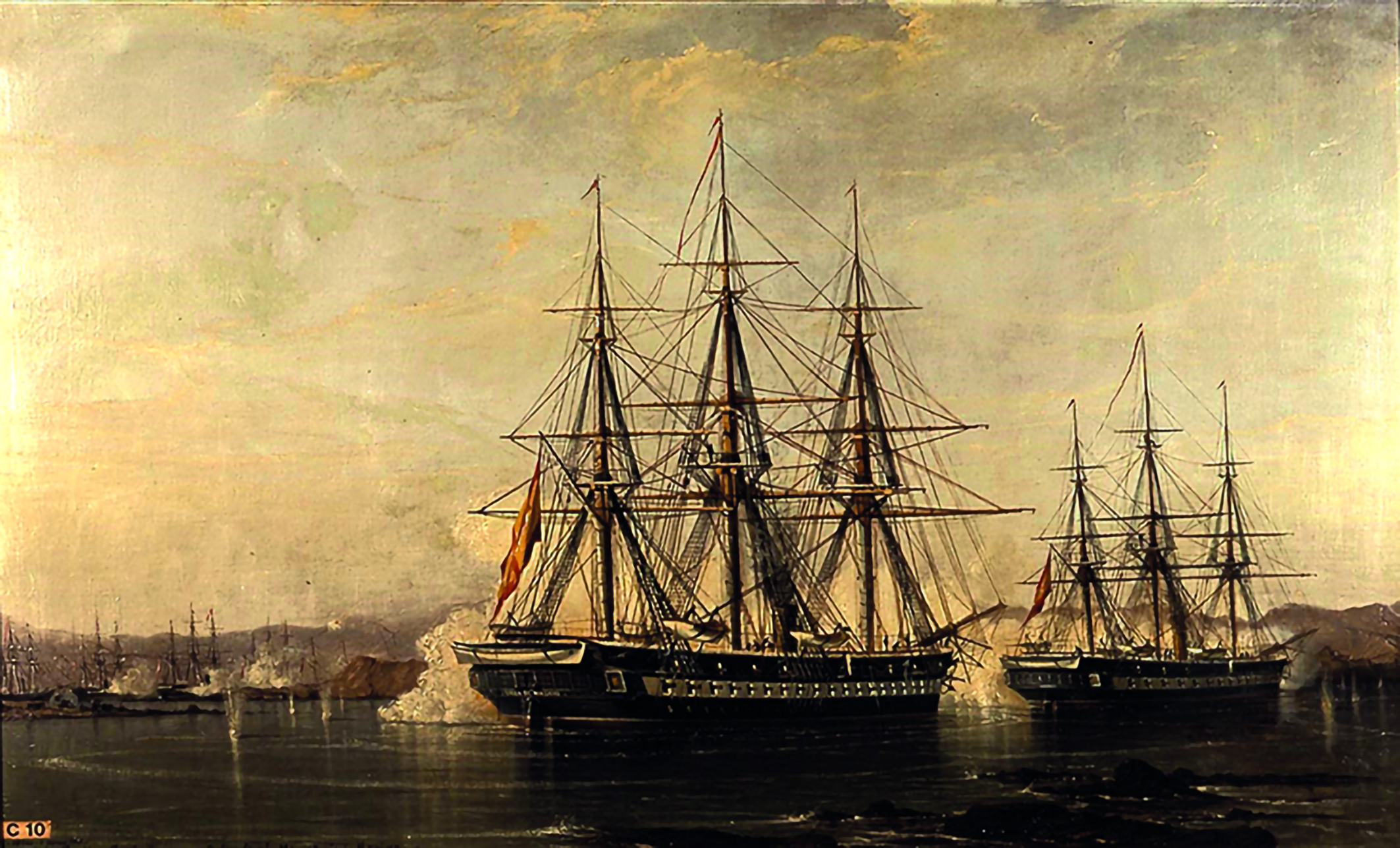 Se enfrenta, con siete barcos: la fragata blindada Numancia, las fragatas de vapor y hélice Almansa, Berenguela, Blanca, Resolución y Villa de Madrid, y la corbeta Vencedora, a las potentes baterías de costa peruanas.