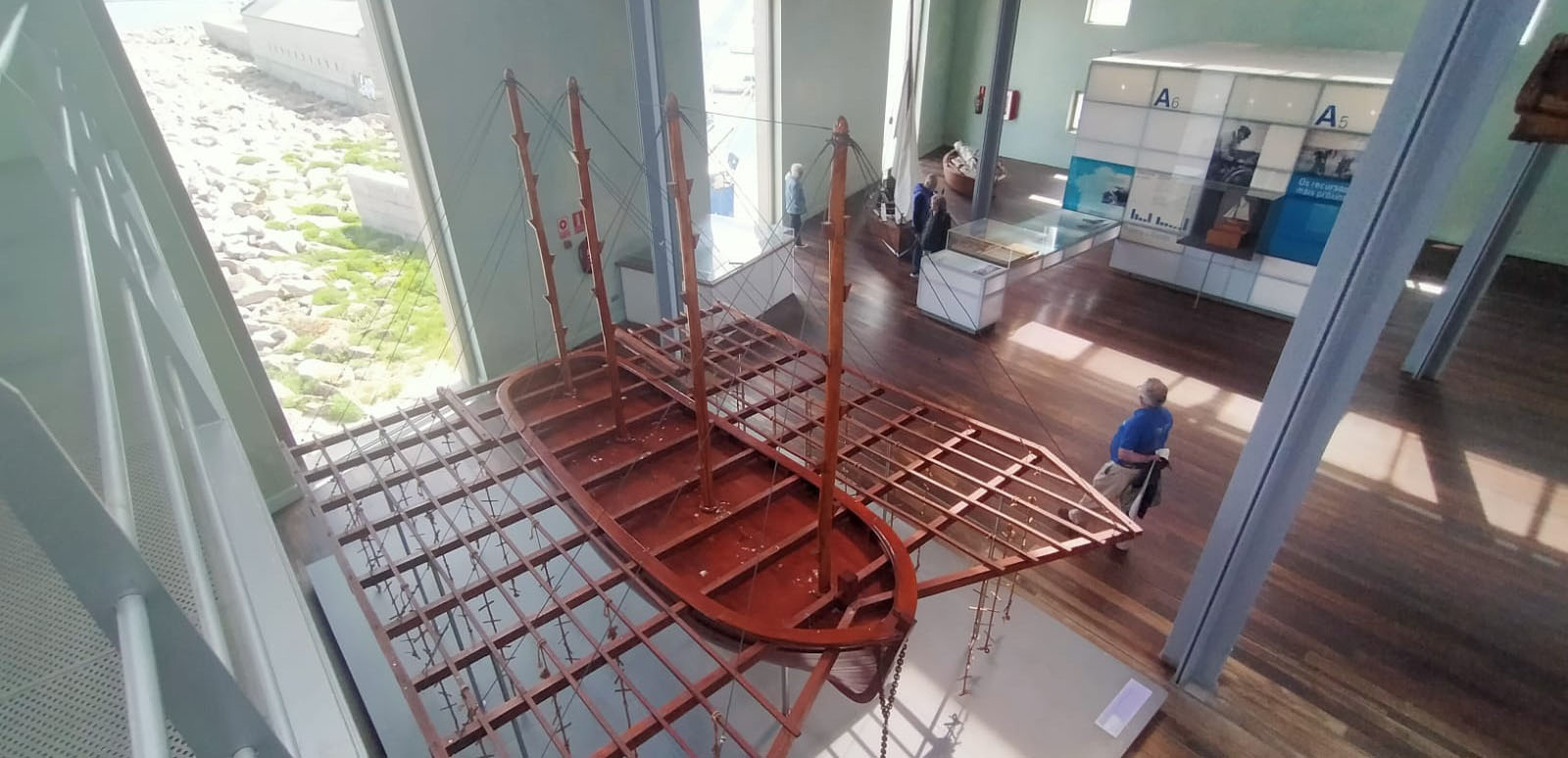Continuando la visita por el exterior caminando por el muelle, nos topamos con los restos arqueológicos del castro da Punta do Muiño y un edificio singular que alberga un acuario en el que nadan las especies más representativas de los tres ecosistemas marinos que hay entre el museo y las islas Cíes.