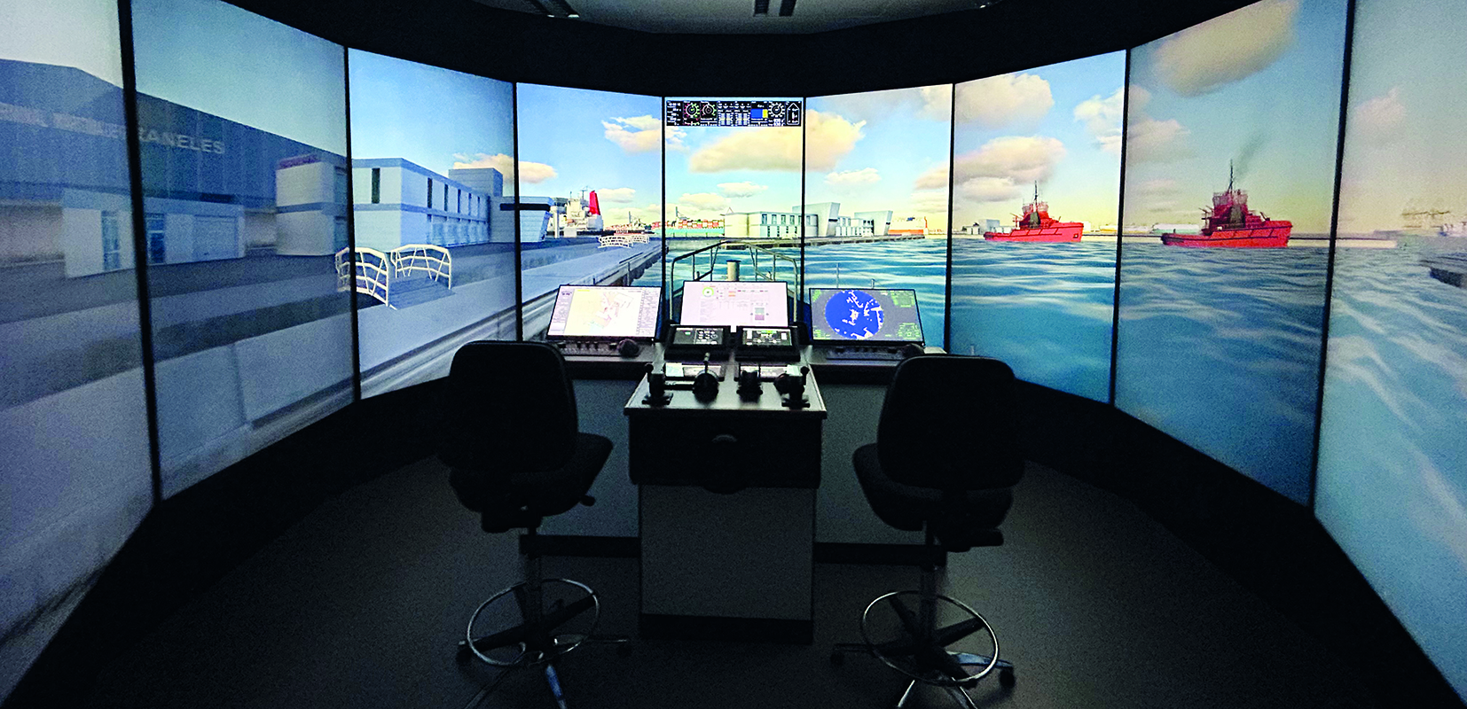 Consta de tres estaciones de simulación más una estación de VTS. Ésta es una de las características que lo distingue de simuladores parecidos. “Todas ellas pueden trabajar por separado o de forma conjunta en una misma maniobra -explica Garrote-. Esto nos permite tener tres simuladores independientes en los que podrían entrenarse tres prácticos, patrones o miembros de los diferentes cuerpos de asistencia o seguridad con ámbito marítimo, o bien, de manera conjunta haciendo que los tres simuladores participen en la misma maniobra pero con distintos roles, permitiendo recrear una maniobra compleja muy realista, por ejemplo al emplazar a un práctico en un gran buque en el simulador “puente/bridge” y a dos patrones de remolcadores en los simuladores “remolcador1/tug1” y “remolcador2/tug2” respectivamente, haciendo así que el factor humano también entre en juego y pueda ser ponderado”. Y esta característica es la que lo hace tan particular.