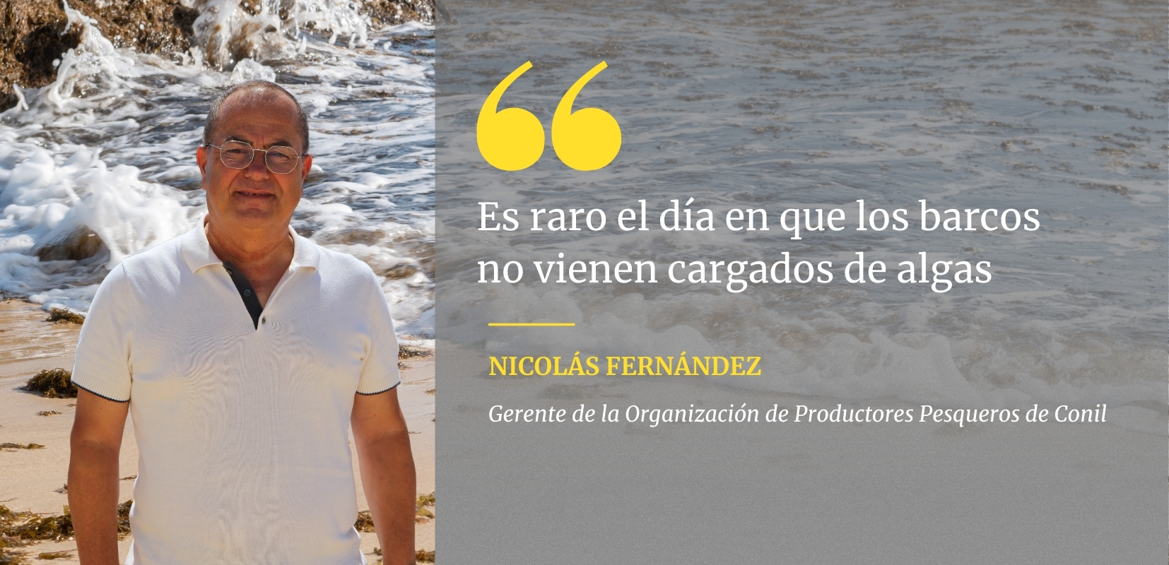 La irrupción del alga Rugulopteryx okamurae, ha producido una importante transformación en el sector pesquero artesanal de pequeña escala, especialmente en las artes menores. Esta especie ha ido colonizando los fondos, tanto rocosos, como de cascajos, y ha hecho desaparecer importantes especies que habitaban en estos ecosistemas, incluyendo el pulpo (Octopus vulgaris) en la rica zona del Banco del Hoyo frente a Cabo Trafalgar. Las temperaturas más altas hacen que se vuelvan más agresivas, y es raro el día en que los barcos no vienen cargados de algas. Estamos desesperados en el sector, pues solo vemos atunes rojos a los que parece afectar menos y algas pardas. Mientras tanto sentimos una gran impotencia por la lentitud del gobierno competente para tomar las medidas adecuadas en materia de posibilidades de pesca. No sabemos cuándo se adaptará esta alga, pero, poco, a poco, está destrozando y acabando con el sector artesanal, especialmente de Barbate y de Conil.