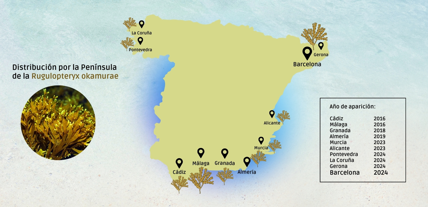 El alga asiática Rugulopteryx okamurae es una vieja conocida de los pescadores de la costa andaluza. Ahora acaba de ser detectada cerca del Puerto Olímpico de Barcelona. Los expertos advierten de que su propagación está en ascenso y de que su impacto podría intensificarse en los próximos meses.