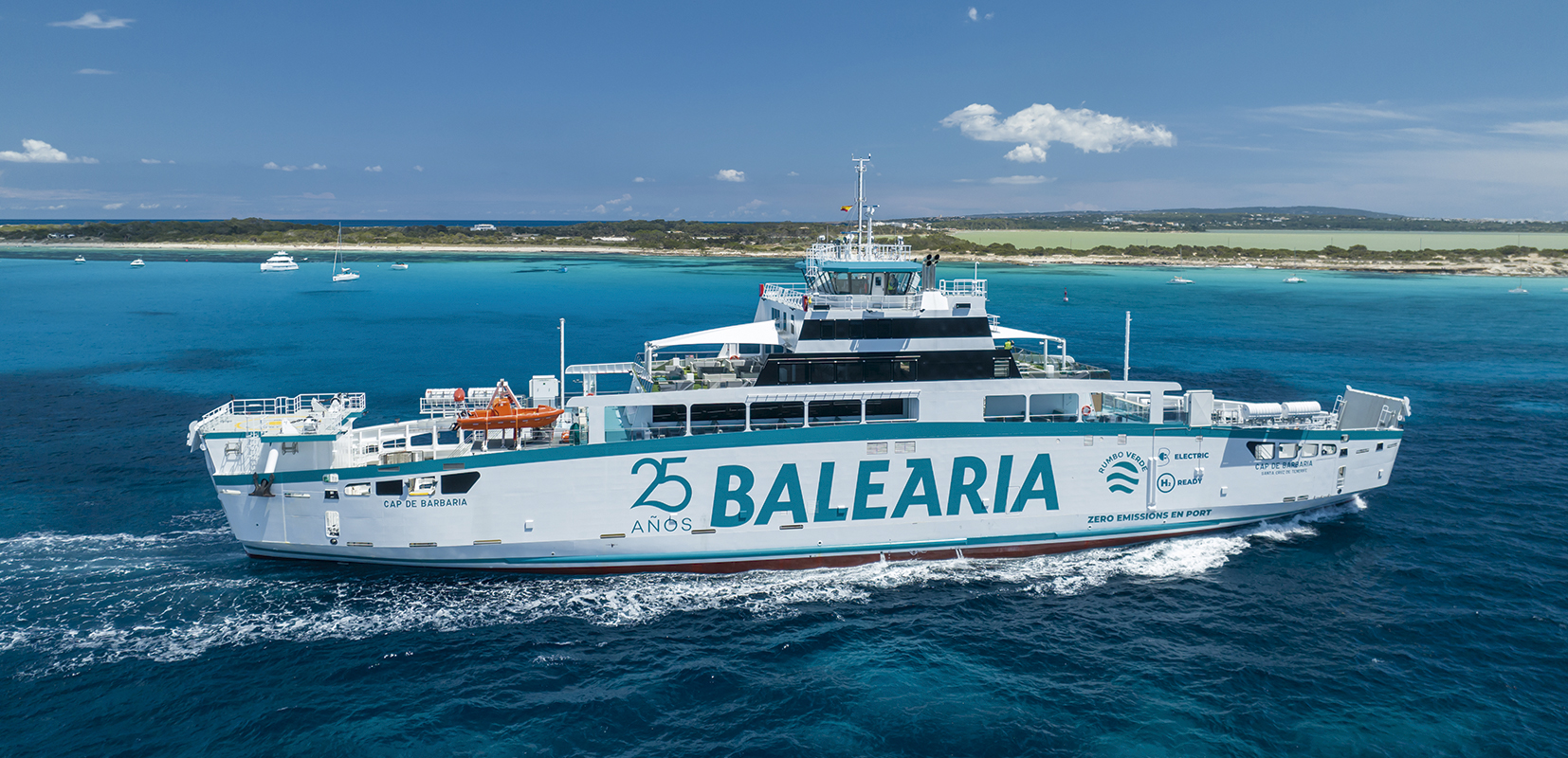 El ferri Cap de Barbaria tiene 82 metros de eslora y 15,5 de manga, y navega hasta 14 nudos. Con capacidad para 390 personas y 50 vehículos realiza el trayecto entre Ibiza y Formentera. Cuenta con una toma de conexión a tierra OPS, un sistema de almacenamiento de energía con autonomía de 12 horas en puerto y una gestión inteligente de la planta eléctrica del buque que optimiza en todo momento su uso y mejora su eficiencia. Además, el buque está preparado para instalar un sistema de hidrógeno que permitirá a Baleària utilizarlo como un laboratorio de pruebas para el uso del hidrógeno verde a pequeña escala. Este buque eléctrico, en las aproximaciones, maniobras y estancias en los puertos, elimina totalmente la contaminación acústica y navega con emisiones cero.