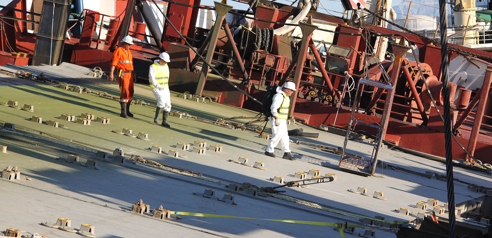 Investigadores midiendo con láser la cubierta de un buque en Ferrol.CAUSAS Y RECOMENDACIONES