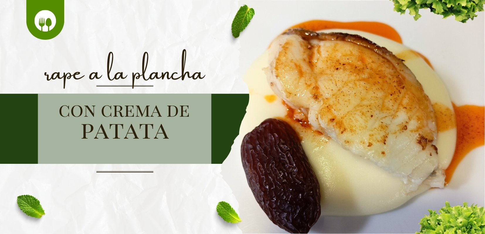 Ponemos un poco de crema de patata como base, luego el pescado encima y aderezamos por último con el aceite de ajo y pimentón. Decoramos con el dátil.