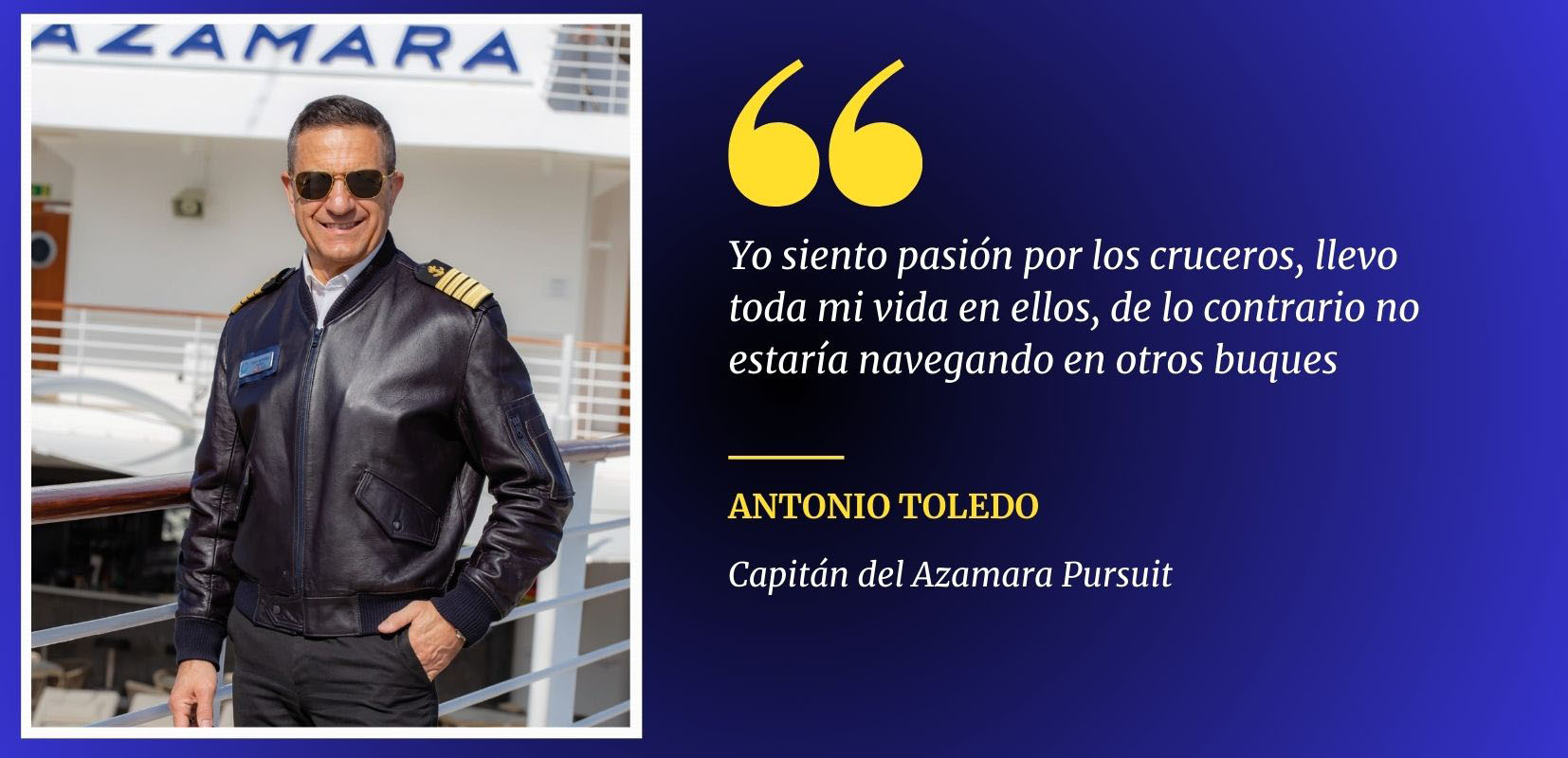 “El día de un capitán, -nos dice Antonio Toledo, capitán del Azamara Pursuit- es muy variopinto, no es como en los mercantes, aquí hay muchas personas y muchos departamentos, nos organizamos en lo que se llama el comité ejecutivo, en donde me reúno con todos los jefes de las secciones. Hay muchos cócteles, muchas cenas y actividades en las que participo”.