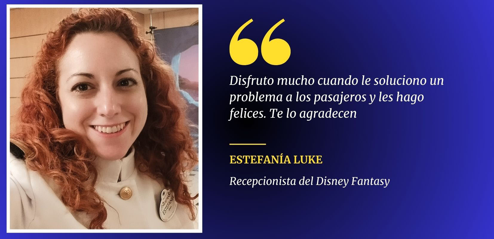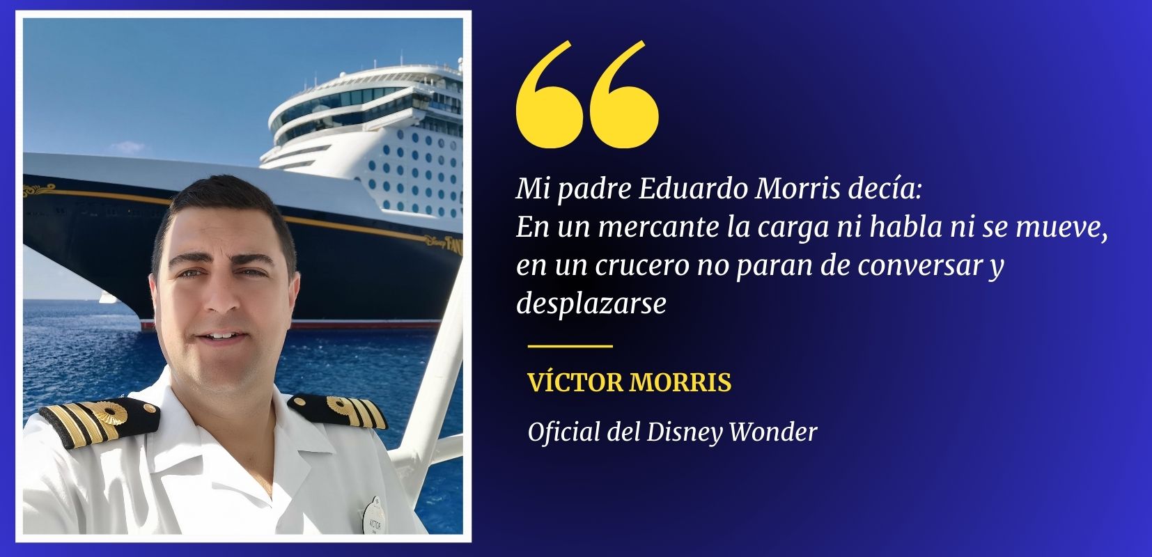 Víctor Morris, oficial del Disney Wonder, que ha trabajado en cruceros en cuatro navieras, nos comenta: ”En la que estoy actualmente lo que más me gusta es el respeto que hay entre los mandos y los subalternos. La promoción laboral es muy buena también para los españoles, un camarero puede acabar siendo director de restaurante”.