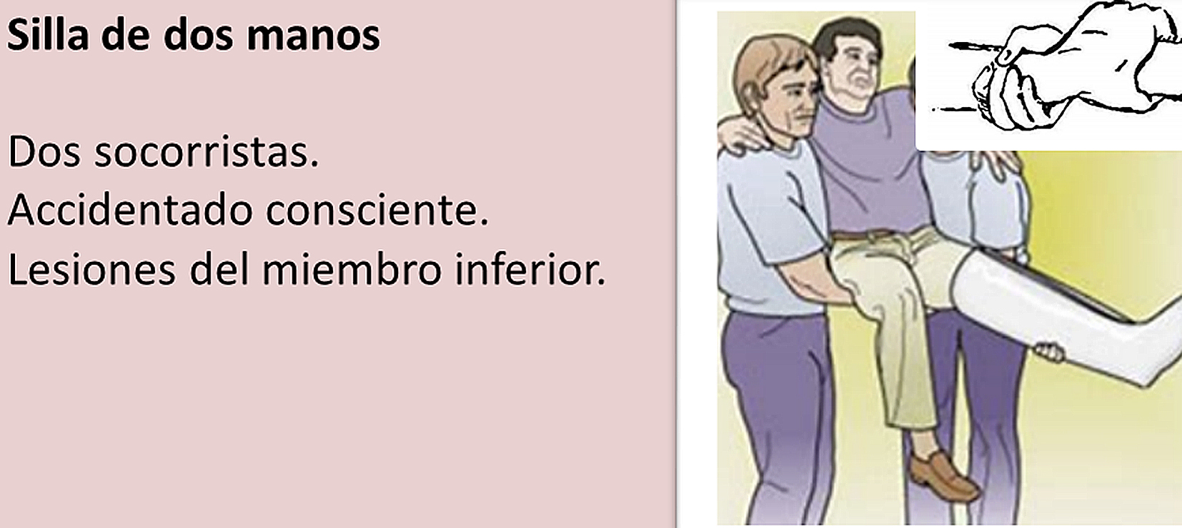 • Para las lesiones de los miembros superiores, en sujetos consientes, se utiliza la silla de dos manos.