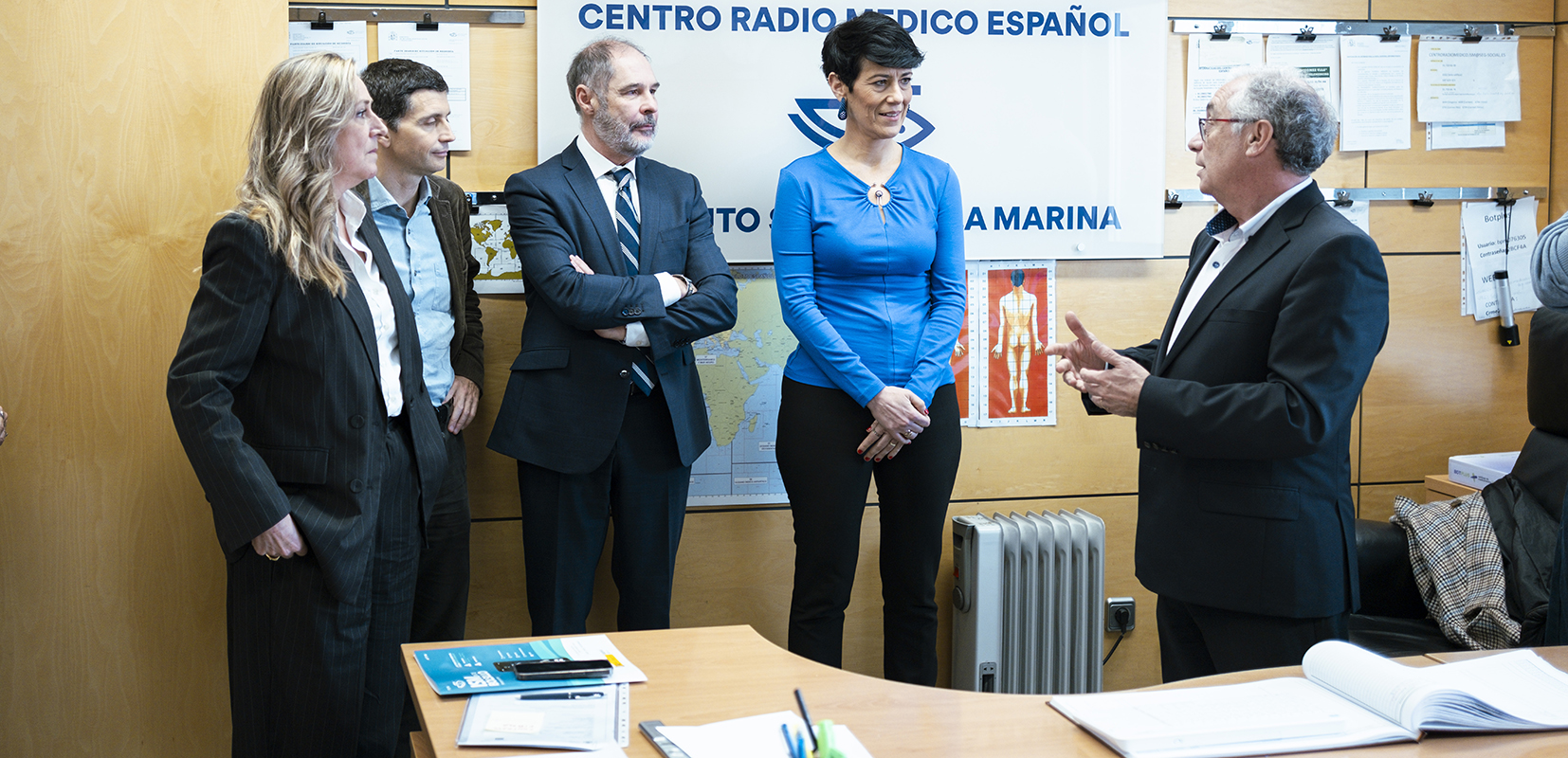 Desde el año 2008, existe un convenio de colaboración con el Hospital General de la Defensa, cuyos facultativos ofrecen asesoramiento al Centro Radio Médico. En una videollamada con el Gómez Ulla, la ministra preguntó por el tipo de consultas más frecuentes a lo que desde el hospital respondieron que son las lesiones con utensilios de pesca. Estos accidentes precisan en ocasiones de una segunda opinión. “Por ejemplo, cuando se clava algún objeto en el ojo de un pescador, los médicos del CRME reciben asesoramiento de un oftalmólogo para atender el caso si lo precisan”, dijeron. También se interesó por la salud mental de los pescadores.