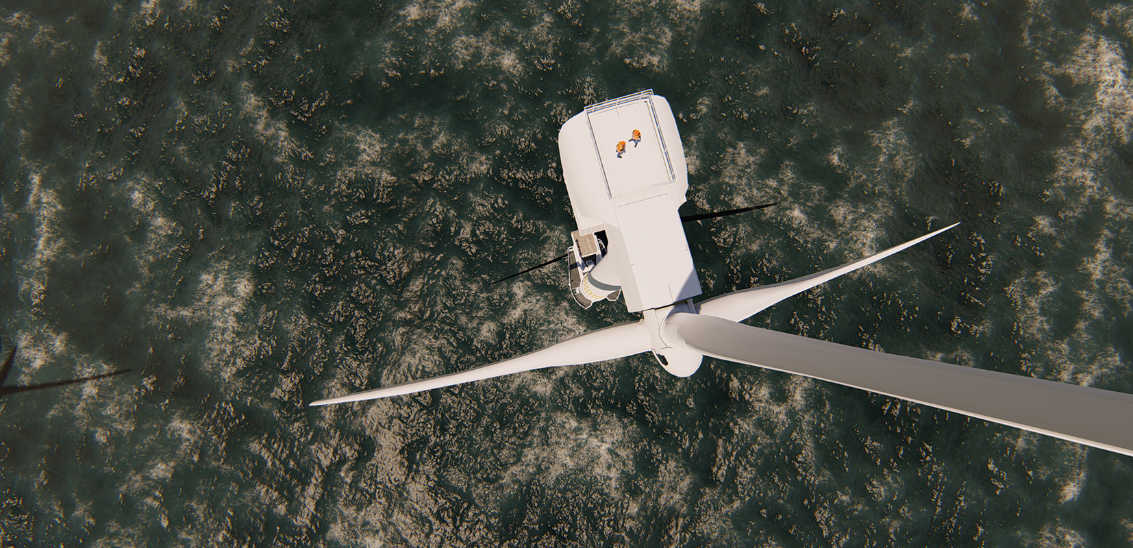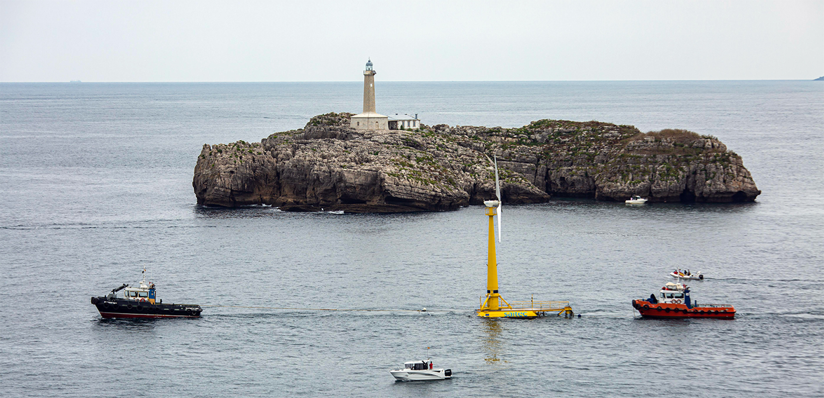 - Aerogeneradores marinos sobre plataforma flotante: Este tipo de emplazamientos abren la puerta a parques más alejados de la costa en zonas de gran profundidad. Las bases flotantes permiten desplegar aerogeneradores en extensas áreas marinas con gran potencial de viento. Con este tipo de técnica, la restricción de profundidad viene marcada por el tendido de las infraestructuras eléctricas submarinas de evacuación, capaces de llegar a cientos de metros de profundidad.
