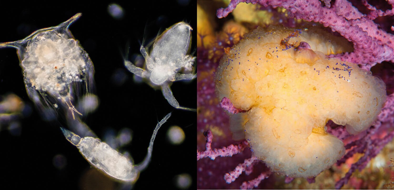 Los sedimentos del mar están compuestos por partículas que contienen calcio, magnesio y oligoelementos como el cinc o el azufre que les confieren beneficios para la salud superiores a los de las arcillas. Izquierda: Plancton en suspensión. Derecha: Ascidia Aplidium albicans de la que se obtiene el Aplidin (plitidepsina).CONTAMINACIÓN 0 - 1 SOSTENIBILIDAD
