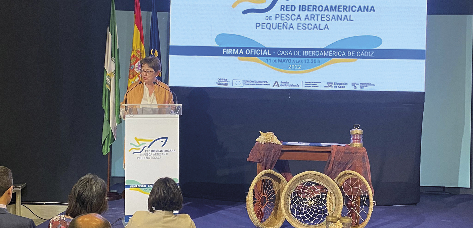 Durante el acto de creación de la Red Iberoamericana de la Pesca Artesanal a Pequeña Escala (Ripape), Ana Corredera, viceconsejera de Pesca de la Junta de Andalucía, se mostró agradecida por la elección de Cádiz como lugar de encuentro para poner en valor el esfuerzo de los profesionales de la pesca e hizo mención de algunos de los retos a superar como son los efectos del alga asiática en las costas andaluzas, el alza del precio del gasoil o la pérdida de caladeros con especies de alto valor como es el voraz en el Estrecho de Gibraltar.