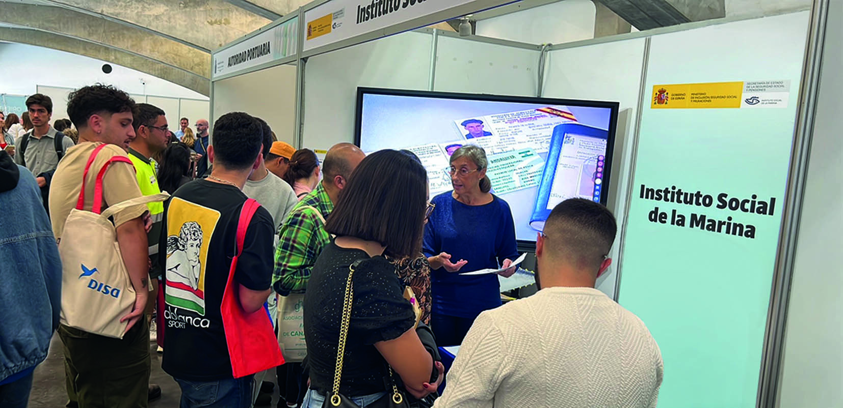 Gran afluencia de jóvenes al estand del ISM en la feria de empleo de Tenerife, interesados en la formación marítimo-pesquera.